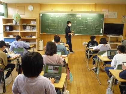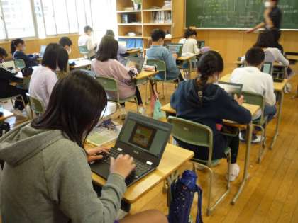 基本的人権や平和主義、国民主権について、タブレットで調べたり、ノートにまとめたりしながら学習を進めています。