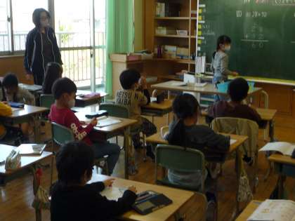 二桁同士の足し算の学習では、筆算の仕方を学びました。どうして、一の位から足すのかを考えています。