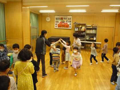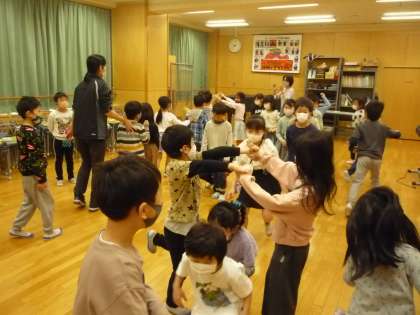 ロンドン橋を楽しく歌いながら取り組んでいます。
