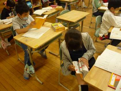 辞書の使い方を学びました。素早く引けるように何度も練習しています。