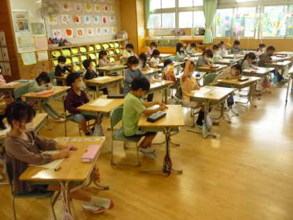 あいにくの雨で、陸上競技会は延期になりましたが、子供たちは落ち着いて学習に臨んでいます。