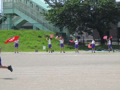 6年生さんからの応援を受け、みんな力いっぱい走っています。