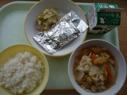 むぎごはん、かしわうどん、さばのぎんがみやき、あまずあえ