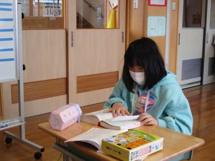 国語の学習で国語辞典の使い方を学んでいます。ホール、ボール、ポールの順番で辞書に載っていることを確かめました。