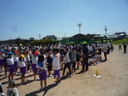 今年度、2回目の避難訓練を行いました。そして、今日は新しい学年・学級になって初めてのグラウンドへの避難でした。新しい教室からの避難経路や「おはしも」を守って、避難することができました。