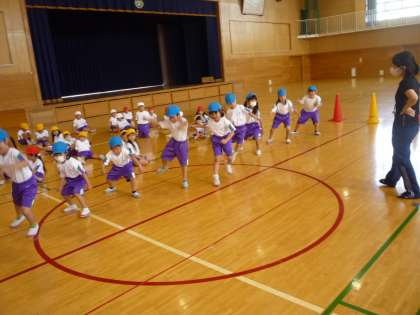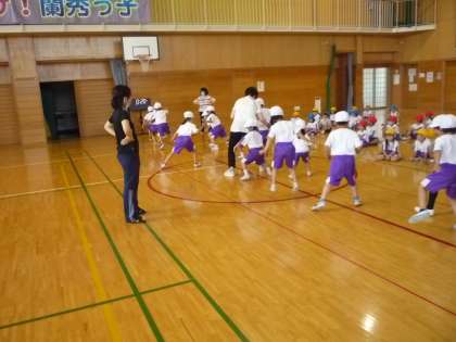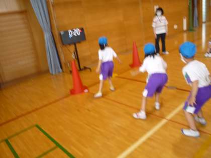 体力テストの練習をしました。反復横跳びでは、リズムよく動く練習を何度もしました。