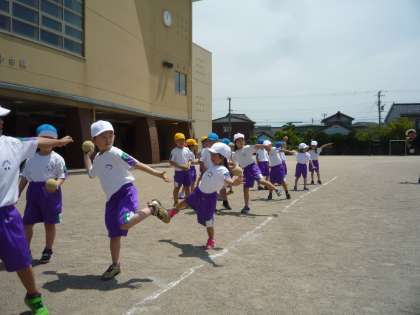 体力テストの練習をしました。外では、ソフトボール投げの練習です。ボールを耳に寄せて、右足に体重を乗せ(右利き)思いっきり手を振って投げました。遠くまで投げることができるようになってきました。