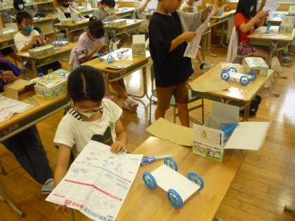 電気の学習では、豆電球やモーターを使って、電池のつなぎ方や電気の通り道など、実験を通して学びます。