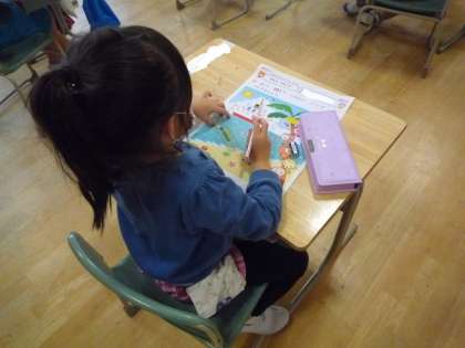 ひらがなや算数の学習をがんばっています。