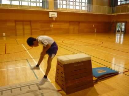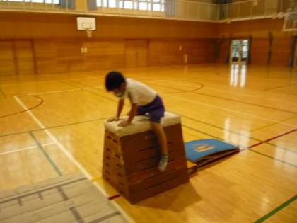 跳び箱運動の学習です。開脚跳びの高さに挑戦したり、練習の場で練習したりしました。