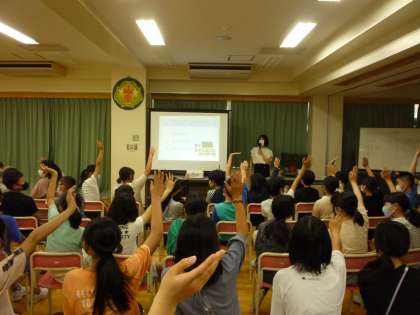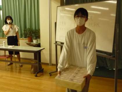 税理士会から講師を招いて、租税教室を行いました。税の役割や使われ方等を学びました。盛り上がったのが、中学生100人分の教育費、1億円が登場した場面です。