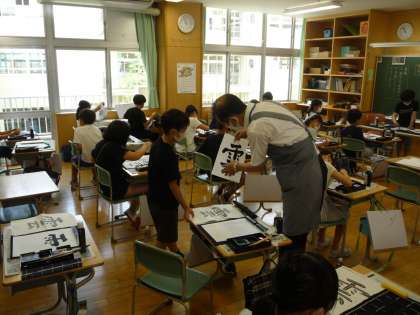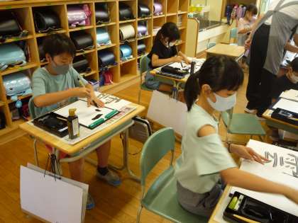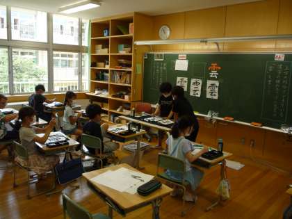 書写の学習では、「雲」を書きました。上と下の部分に分かれている漢字の書き方を学習しました。みんな落ち着いて取り組んでいます。