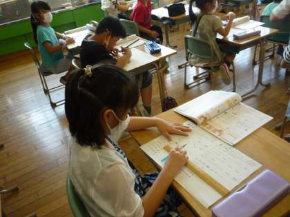 長さの学習では、ものさしで長さを測ったり、言われた長さの線を引いたりしました。