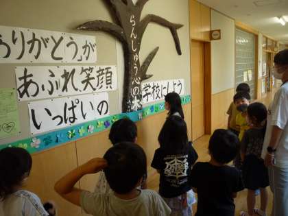 生活安全委員会の取組「ありがとうがあふれ、笑顔いっぱいの学校にしよう メッセージカード募集」に参加しました。見守り隊や6年生等にお世話になった感謝の気持ちを書き、ポストに投函しました。メッセージカードは、らんしゅうの木に掲示されます。