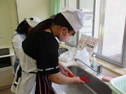 6年生は、家庭科で野菜いための調理実習を行いました。野菜を丁寧に切ることができました。