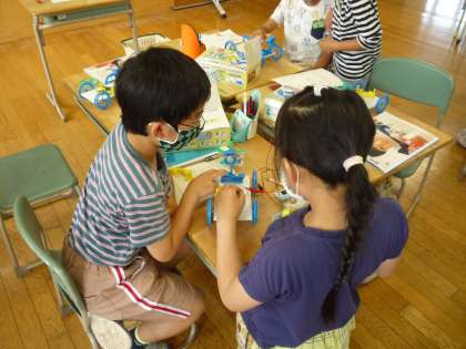電池の数やつなげ方の違いで電流の大きさが変わるのか調べています。