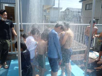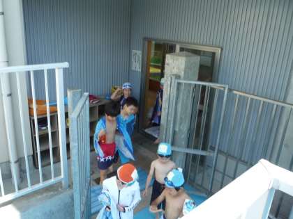 小学校での初めての水泳学習です。昨年はコロナ禍の影響でプールに入ることができませんでした。楽しみにしていた水泳学習が始まり大喜びです。