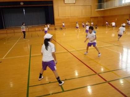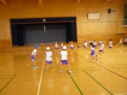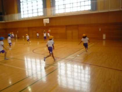 今日は雨でプールに入れないので、体育館でおにごっこをしました。