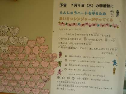 らんしゅうこころの木に、ぽかぽか言葉やありがとうの花が増えています。生活安全委員会では、「あいさつレンジャー」を企画し、挨拶を呼びかけます。とても楽しみです。
