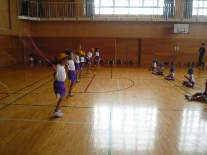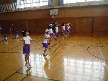 チャレンジキッズわざ7のなわとび遊びの技に挑戦しました。