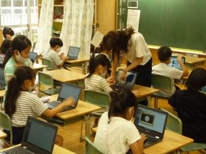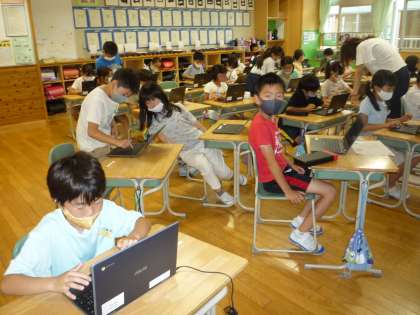 クロムブックでタイピングの練習をしています。ローマ字打ちができるように頑張っています。
