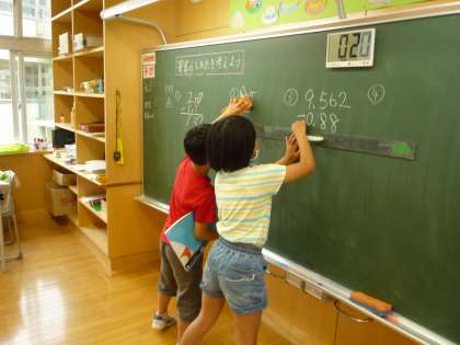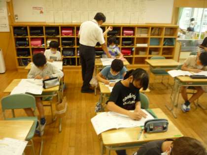 算数の学習は、少人数指導で行っています。多くの教員でサポートしています。