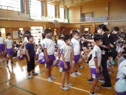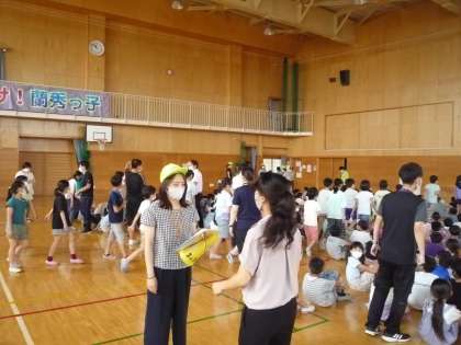 今日の避難訓練は、不審者が学校に侵入しようとしていることを想定して行いました。みんな真剣に臨むことができました。