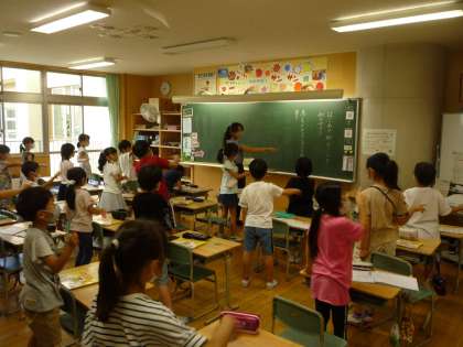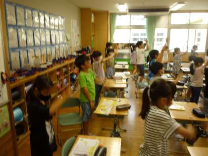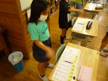 みんなで空書きをして、書順や止め・はらいを確認しました。
