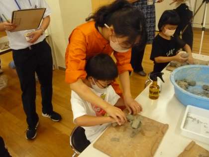 とても楽しそうな基地ができあがってきました。木の上の基地や岩の基地等、イメージを膨らませて造っています。