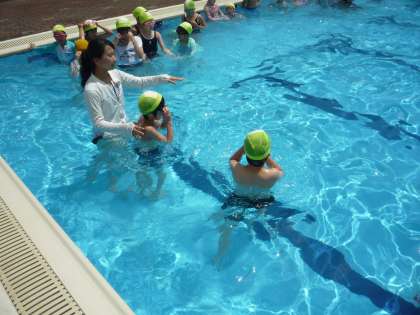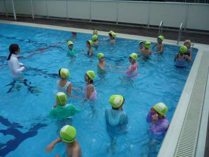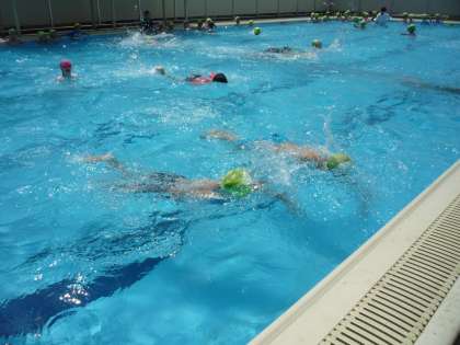 久しぶりに、いい天気になり、プールに入りました。能力別のグループに分かれて練習しました。
