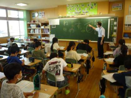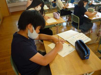 書写の時間にひらがなの練習をしました。鉛筆で美しい字が書けるよう練習しています。