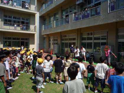 中庭に集まったり、ベランダから眺めたりして、久しぶりの集会をおもいっきり楽しむ姿が見られました。