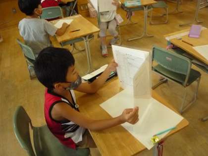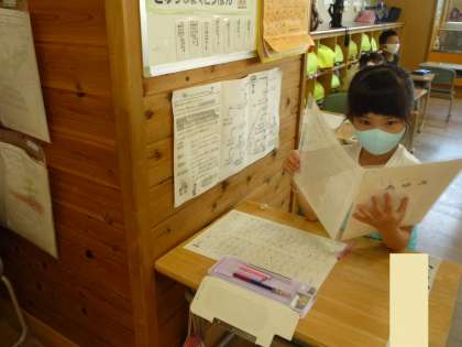 初めての「あゆみ」をもらいました。1学期のがんばりや成長を振り返っています。