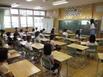 8月27日(金)、2学期が始まり、子供たちの笑顔が学校に戻ってきました。始業式は密を避けるため、校内放送を各教室で聴きました。