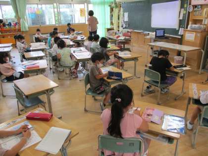 夏休みの自由研究を紹介し合ったり、国語や算数の学習を始めたりしています。