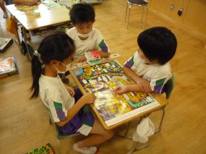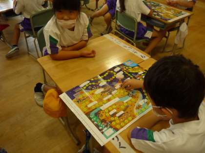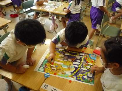 自分たちで考えたルールですごろくゲームをしています。
