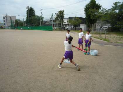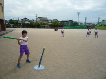 Tボールゲームをしました。止まっているボールを打つのも難しそうです。