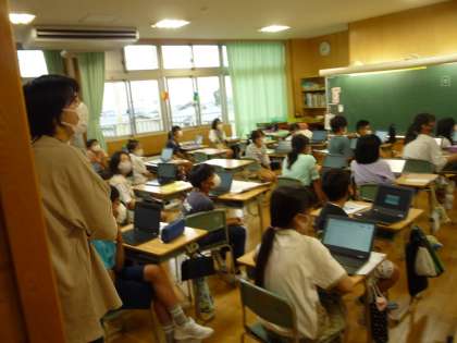 夏休みに取り組んだ自由研究の発表を行いました。今回、クロムブックのプレゼンアプリを使ってまとめてきた人も多いようです。