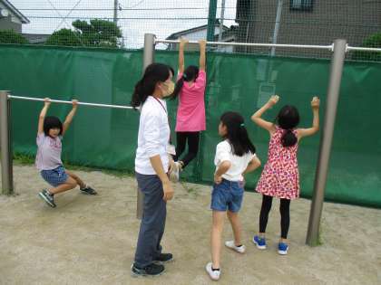 グラウンドでは、様々な遊び方で元気に体を動かしています。