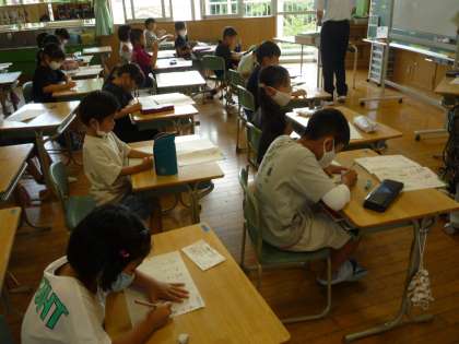 書写の時間では、きれいな字を書こうと真剣に取り組んでいます。