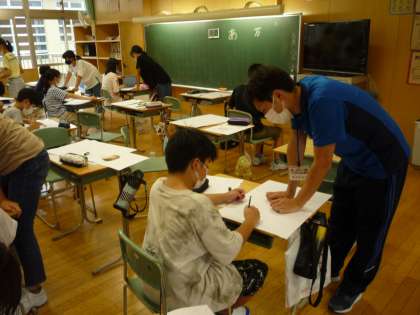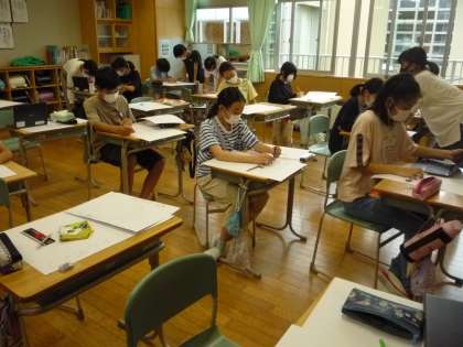 ポスター作りに挑戦しています。自分で呼びかけたい事や標語を考え、取り組んでいます。