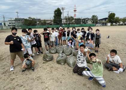 お世話になっているグラウンドをきれいにしよう!と、草むしり大会を開きました。始める前から「むしるぞー!」と気合い十分だった子供たち。終わってみればなんとゴミ袋14袋分もありました。最後の見届けまでしっかりとしてくれた子供もいます。とても頼もしいです。