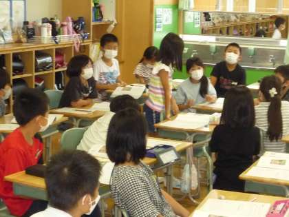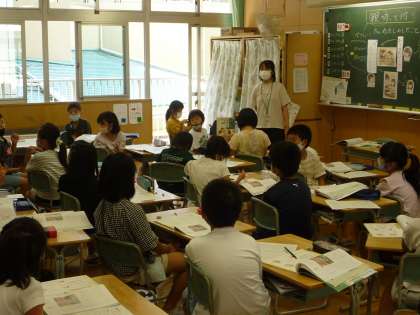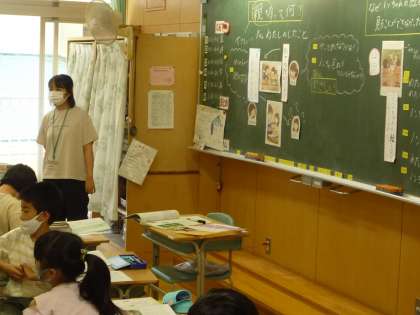 教育実習生が道徳の授業に取り組んでいます。子供たちも張り切って発言をたくさんしています。