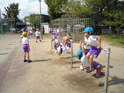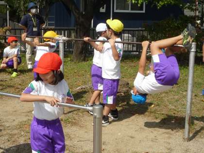 てつぼう遊びでは、いろいろな技に挑戦したり、連続技の練習をしたりしました。