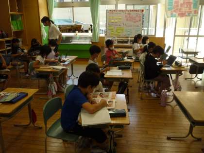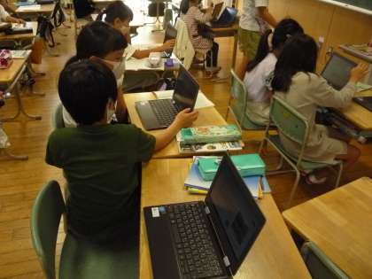 商店街や大型ショッピングセンター等について、比べたり、調べたりしています。