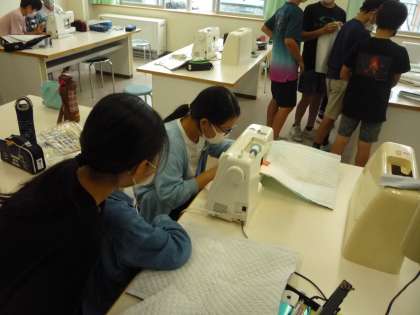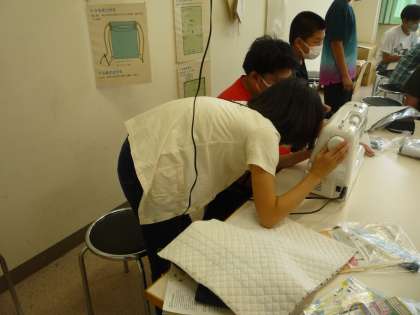 トートバッグ作りでは、上手にミシンを使いこなしています。