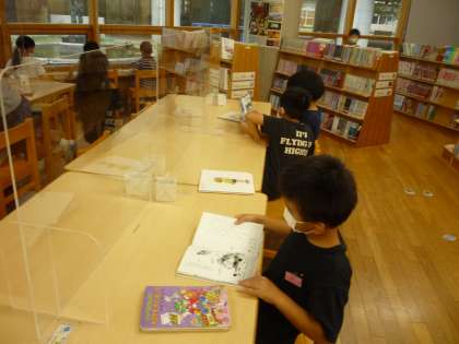 国語の教科書に出ていた「おむすびころりん」を見つけて、おじいさんの顔が違うと教えてくれました。比べて読んでみる、読書の仕方もおもしろいですね。