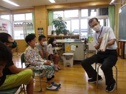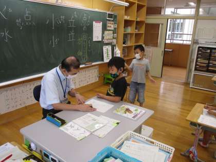 今日は、季節の移り変わりの学習をしてから、コオロギの絵本を読んでもらいました。その後、点の方向の学習をしました。向きを考えて、丁寧に書くことができました。