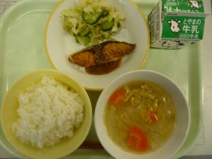 ごはん ふくらぎのごまだれがけ あわせ和え 五目みそ汁 牛乳
