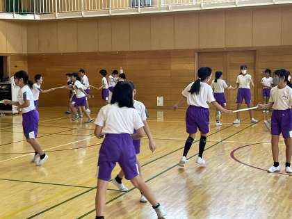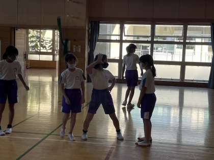 表現運動をしています。最初は恥ずかしがっていた子供たちですが、次第にのびのびと体を動かしていました。
